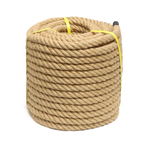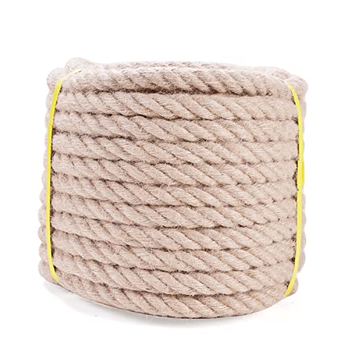 Natural Hemp Rope (1 in X 50 Ft) Twisted Manila Rope Thick Jute Rope for Crafts, Porch Swing Rope, Hemp Rope for Decor, Railing, Docks, Landscaping